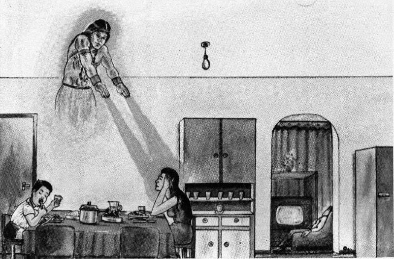 A seguir apresentamos cinco desenhos relativos aos estágios da mediunidade e um desenho sobre os efeitos negativos do álcool na aura de uma pessoa.